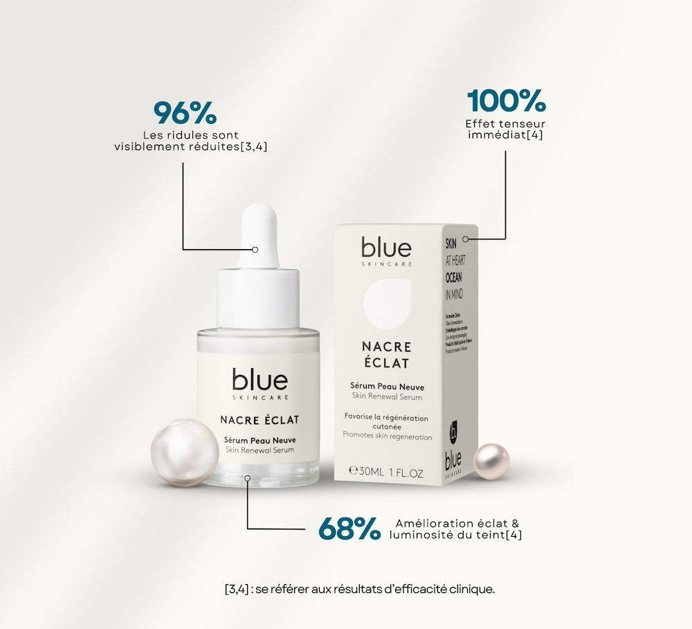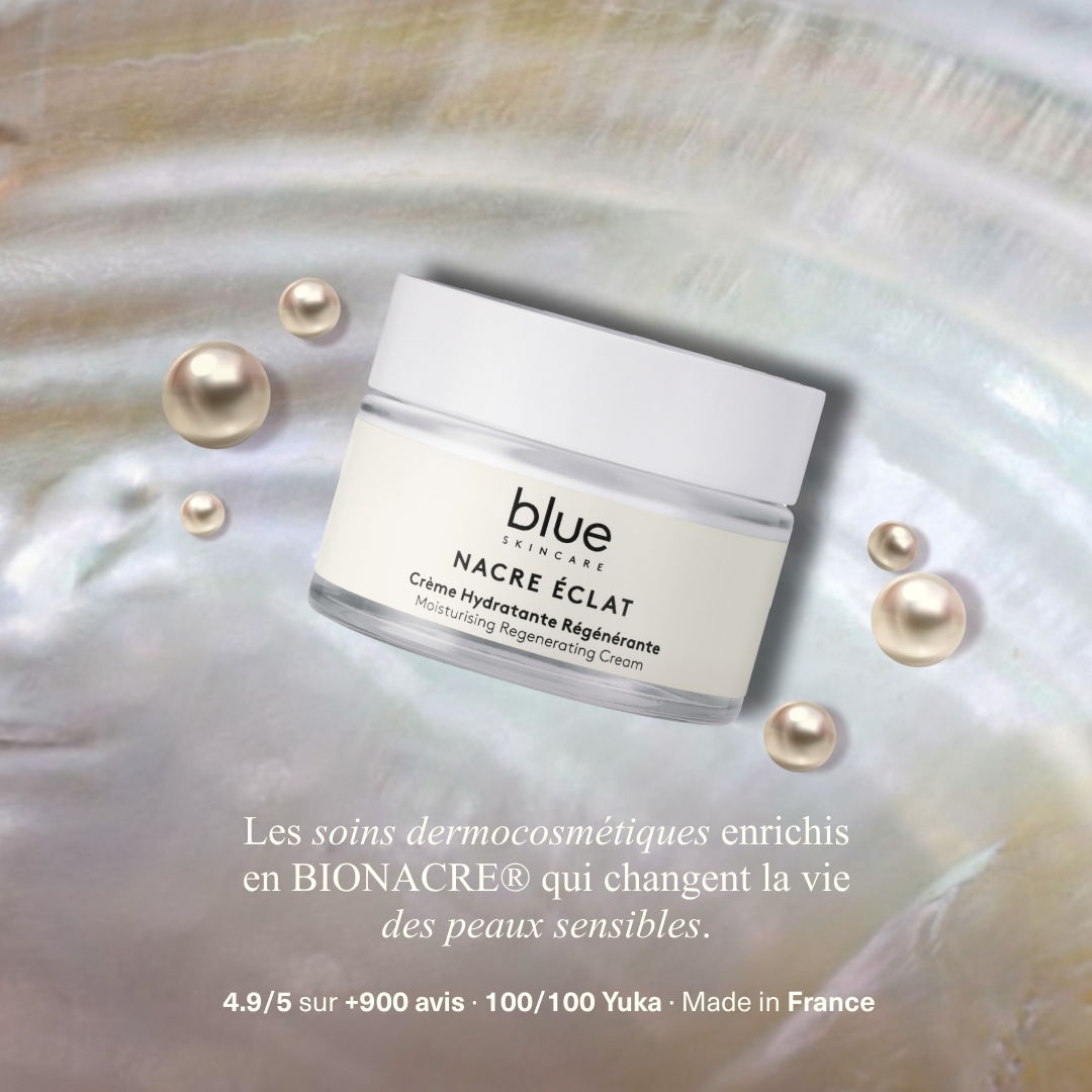 Adoptez Blue Skincare et redonnez à votre peau toute sa vitalité naturelle. Que vous soyez à la recherche d'une crème visage ou d'un soin pour peaux atopiques, notre expertise en dermo-cosmétique à la nacre est là pour vous accompagner.