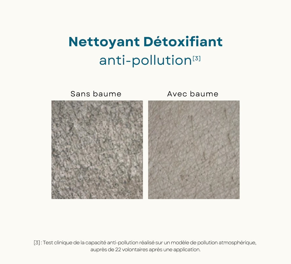 [3] Clinical test evaluating the cleansing ability against microparticles from a pollution model, conducted with 22 volunteers after a single application.
