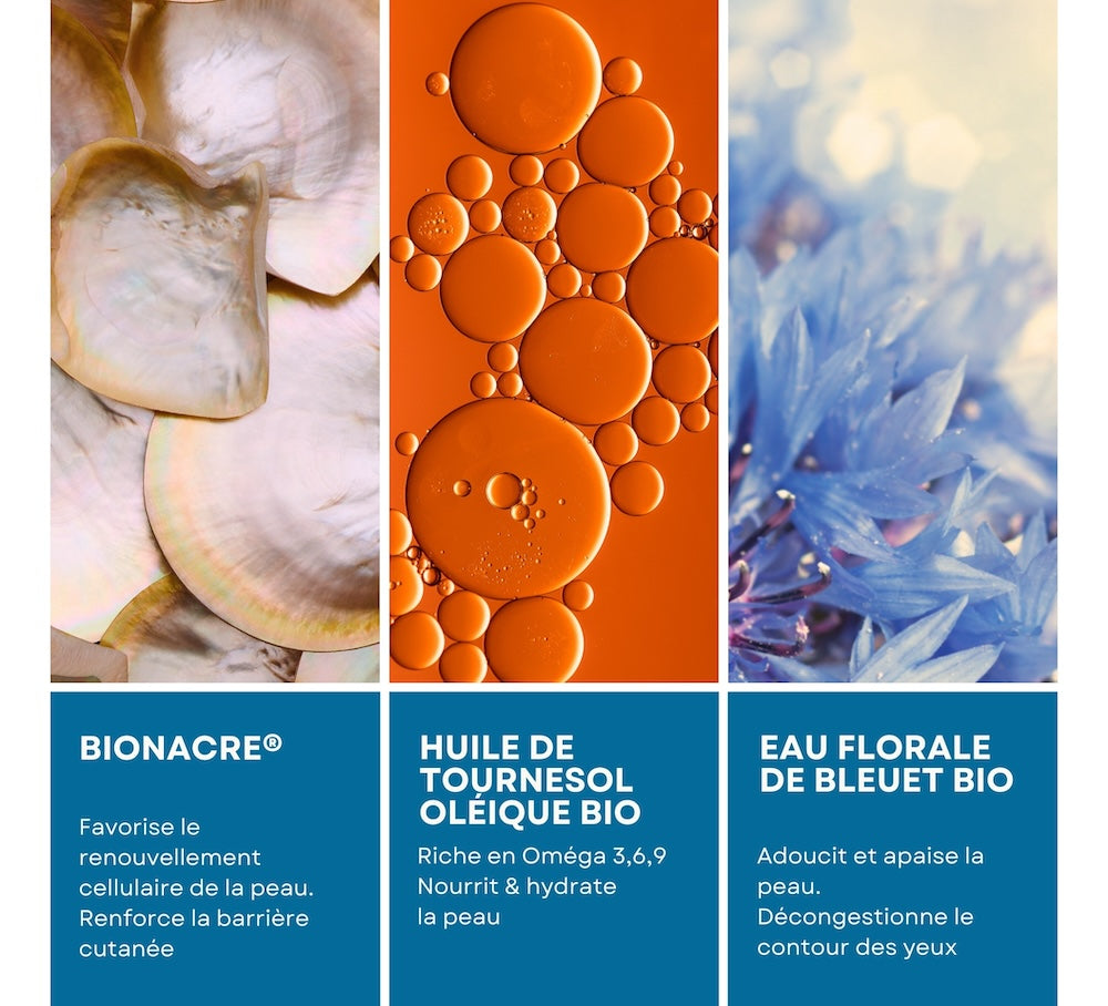 Minerals, essential proteins, complex lipids and polysaccharides combine to repair and regenerate the epidermis, while strengthening the skin barrier.