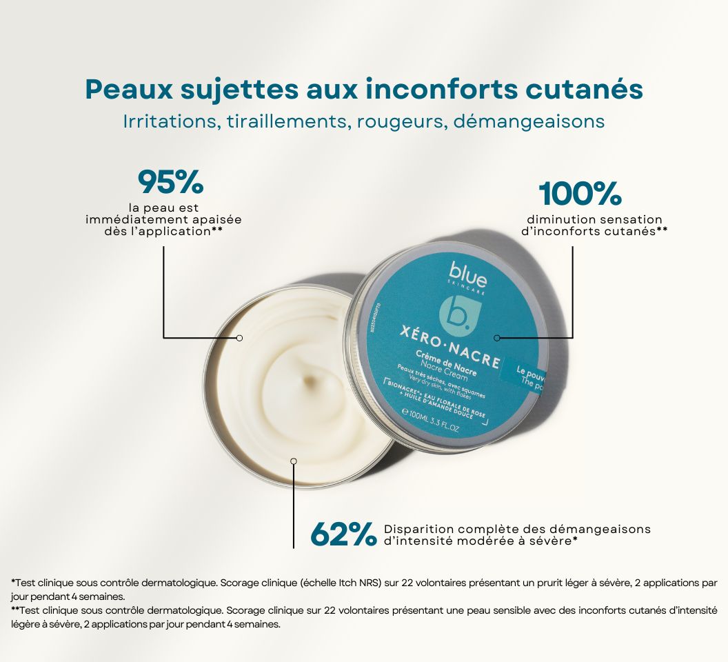 The Nacre Cream, inspired by the ancestral Galen's Cerate formula, nourishes, protects, and soothes itching sensations. Roughness, flakiness, and redness are visibly reduced, leaving the skin smooth, supple, and soft. Fragrance-free.