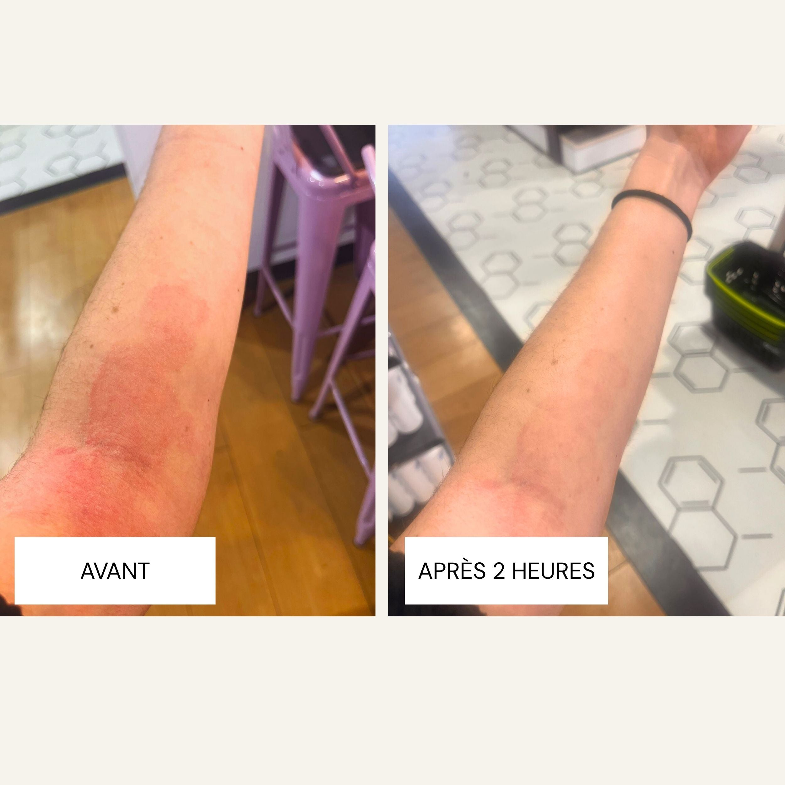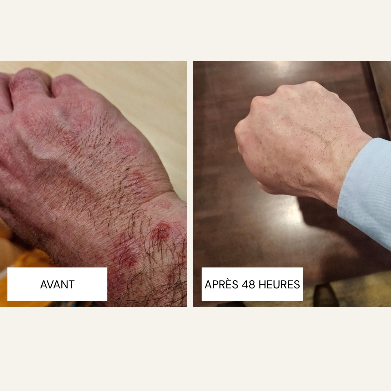 *Test clinique sous contrôle dermatologique. Scorage clinique (échelle Itch NRS) sur 22 volontaires présentant un prurit léger à sévère, 2 applications par jour pendant 4 semaines.