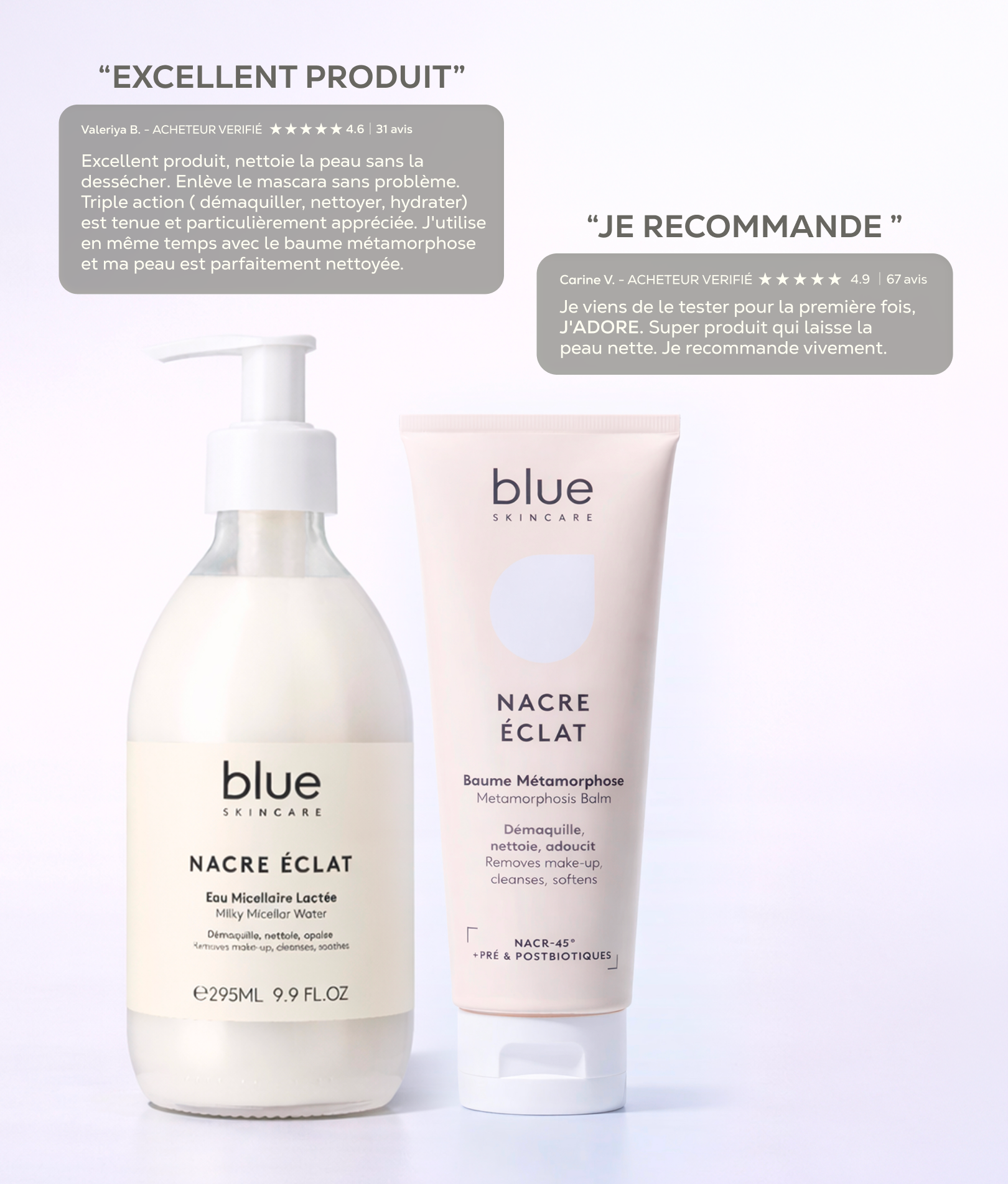 Adopt a two-step routine for clear and radiant skin: gently cleanse with Milky Micellar Water, then nourish and regenerate with Metamorphosis Balm for intense hydration and a luminous complexion.