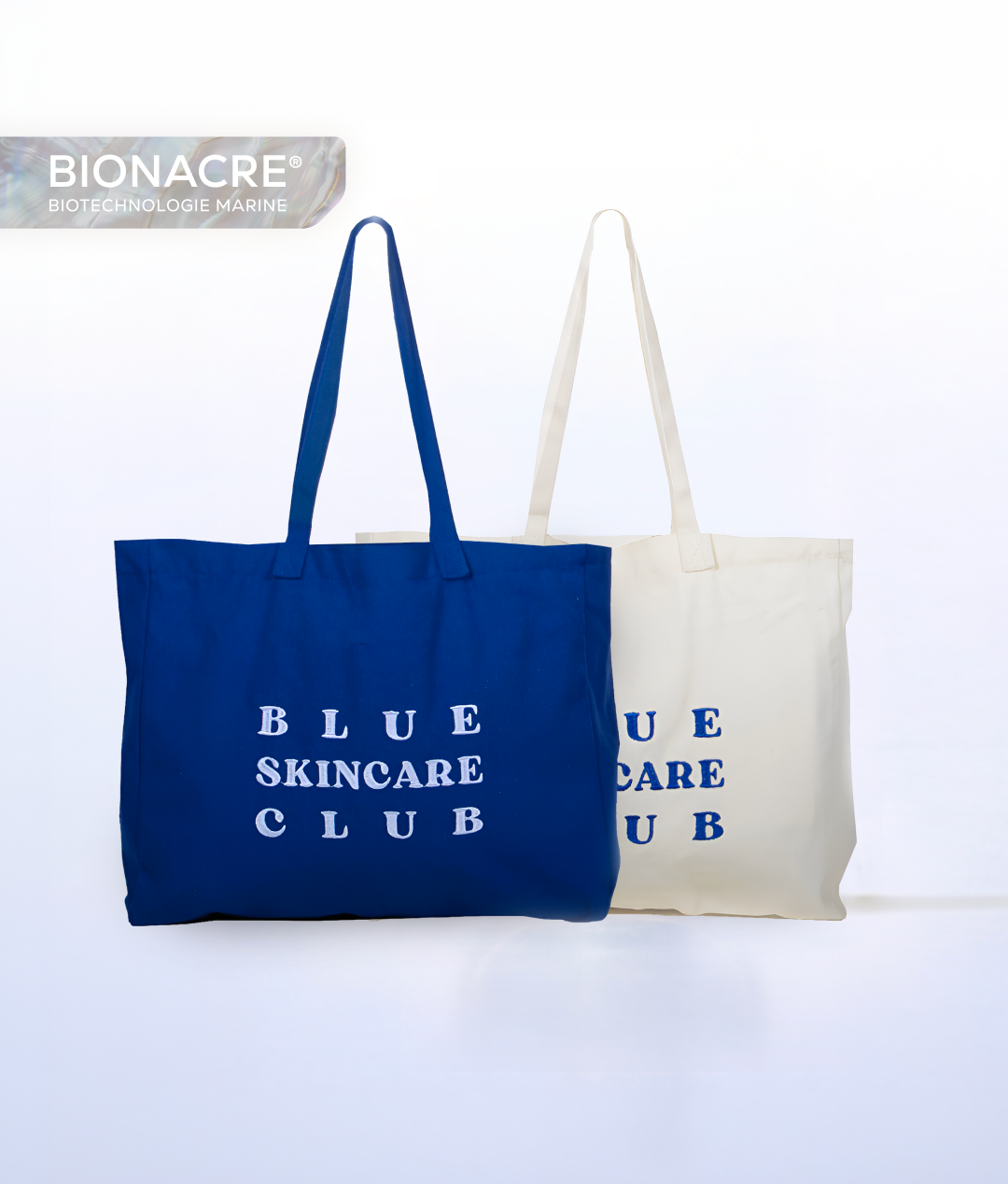 Pour le moment le Tote Bag est disponible en bleu et en blanc.