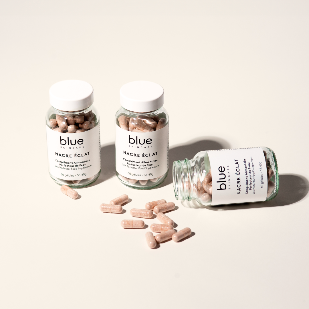 活性珍珠母是 Blue Skincare 食品补充剂的关键成分,源自珍珠牡蛎壳。大珠母贝,它不仅因其对骨骼和关节的益处而受到认可,还因其对皮肤的特殊功效而受到认可: